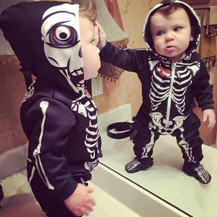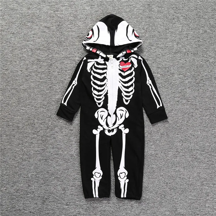 Baby Kids Halloween Clothing Skull Print Toddler Boys Girls Rompers Hooded Jumpsuit Bebe Skull Trick Clothes Zipper Outfits