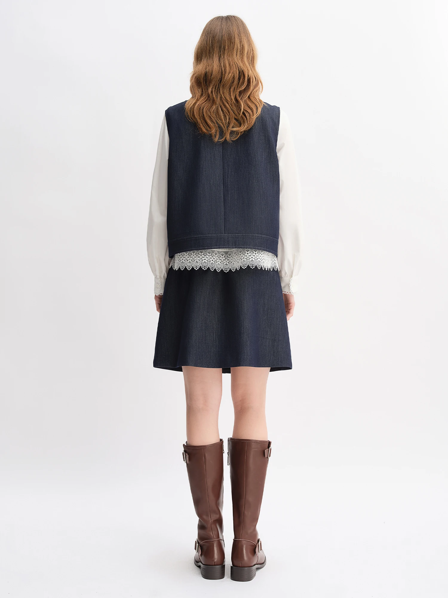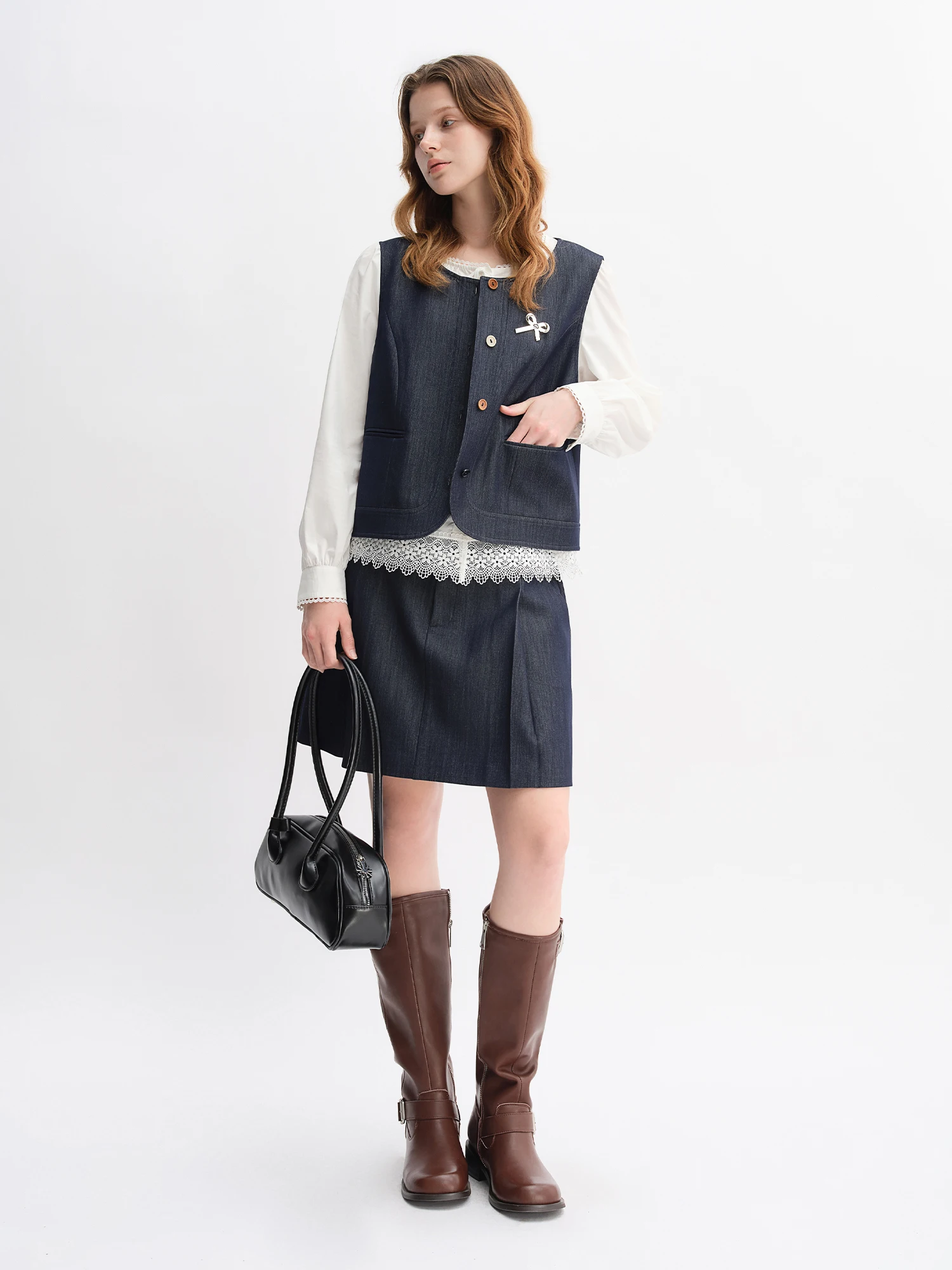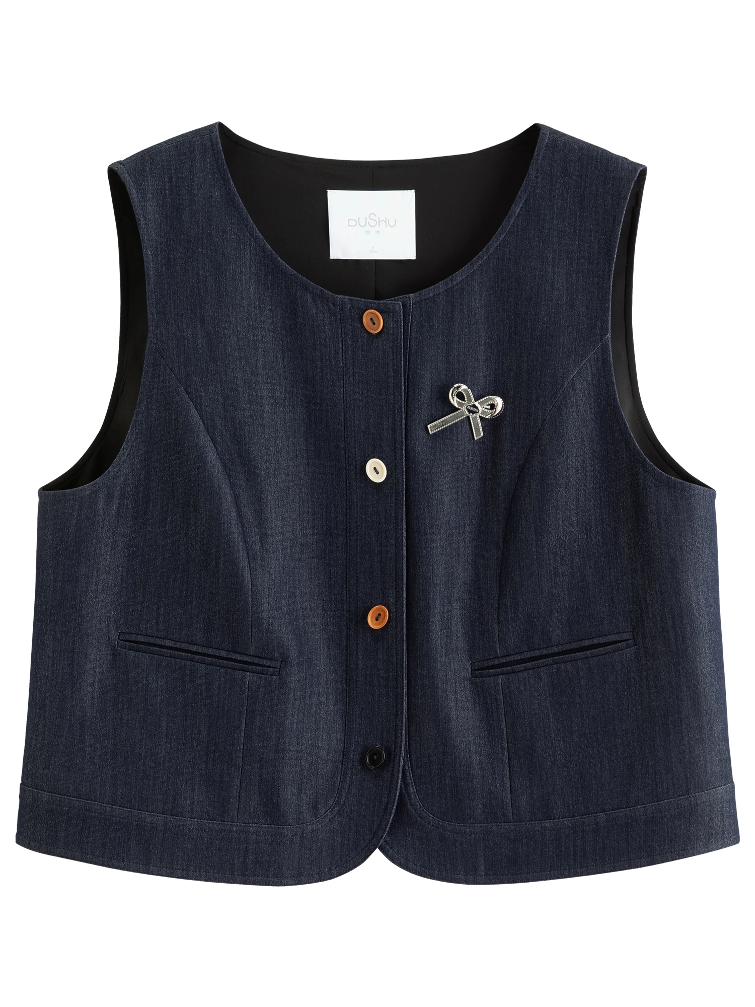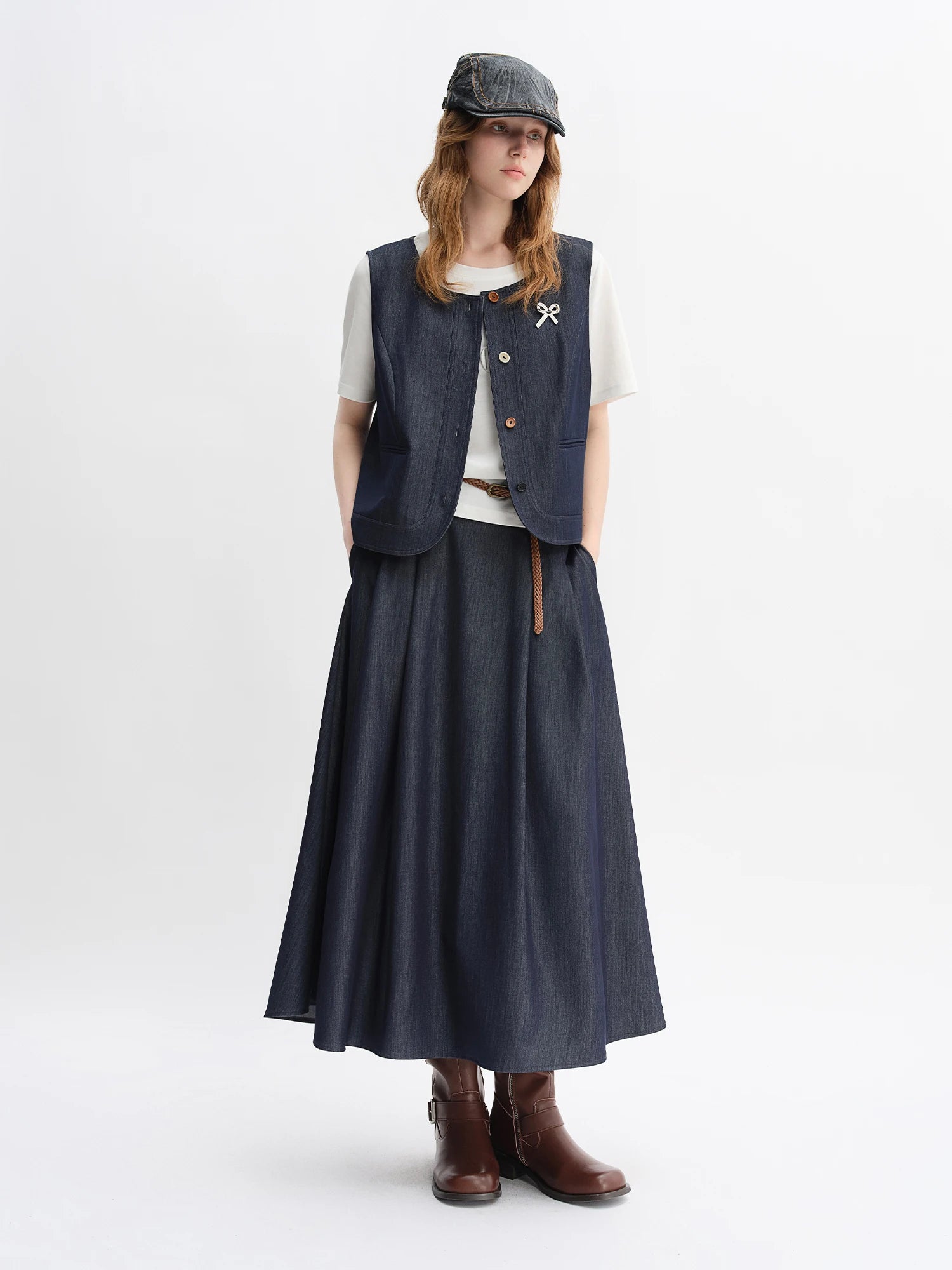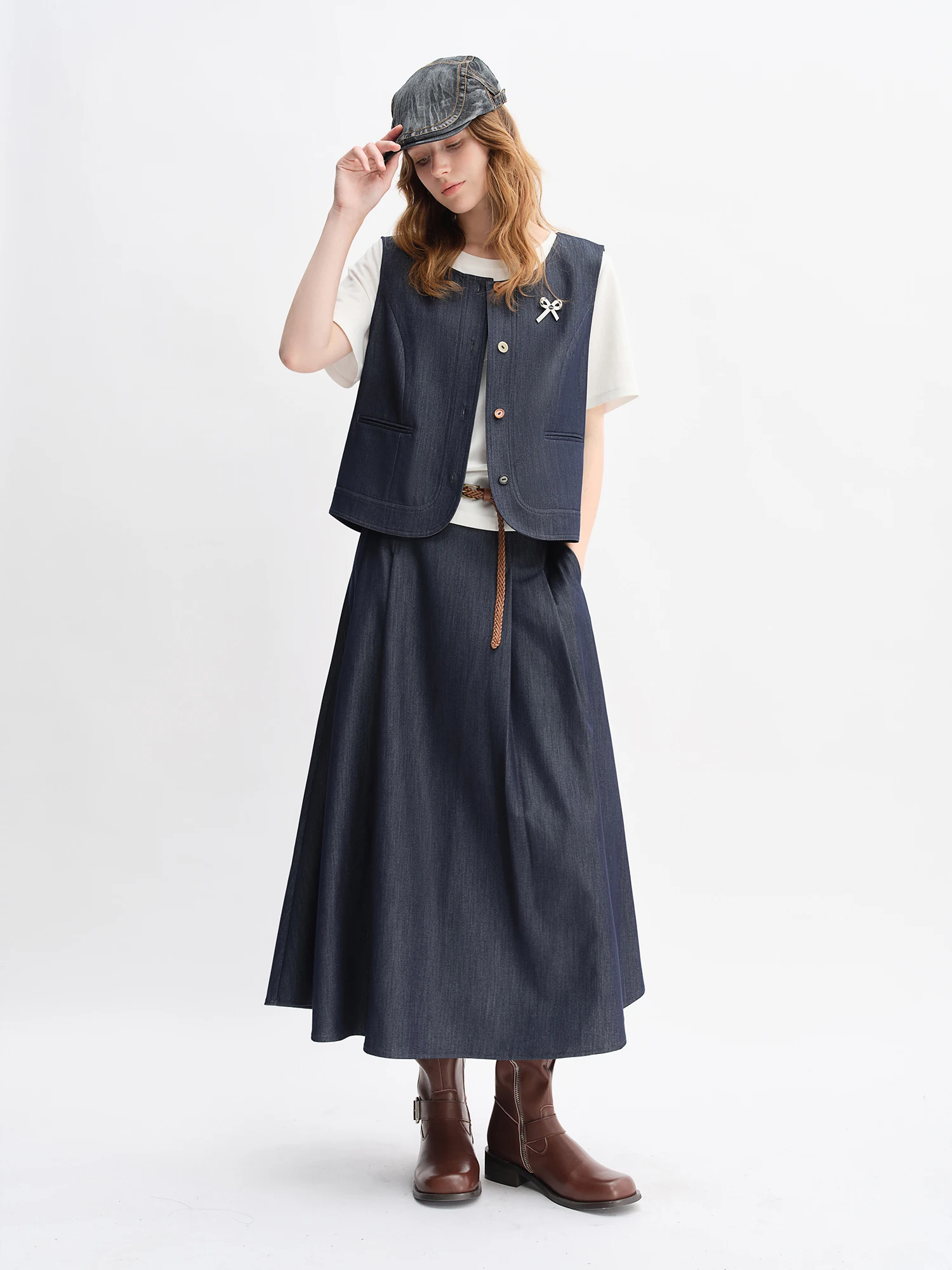 DUSHU Nordic Style Fashion Denim Suit Women Autumn 2025 New Long and Short Vest Skirt Vintage Clothing Ins Dresses 25DS83108