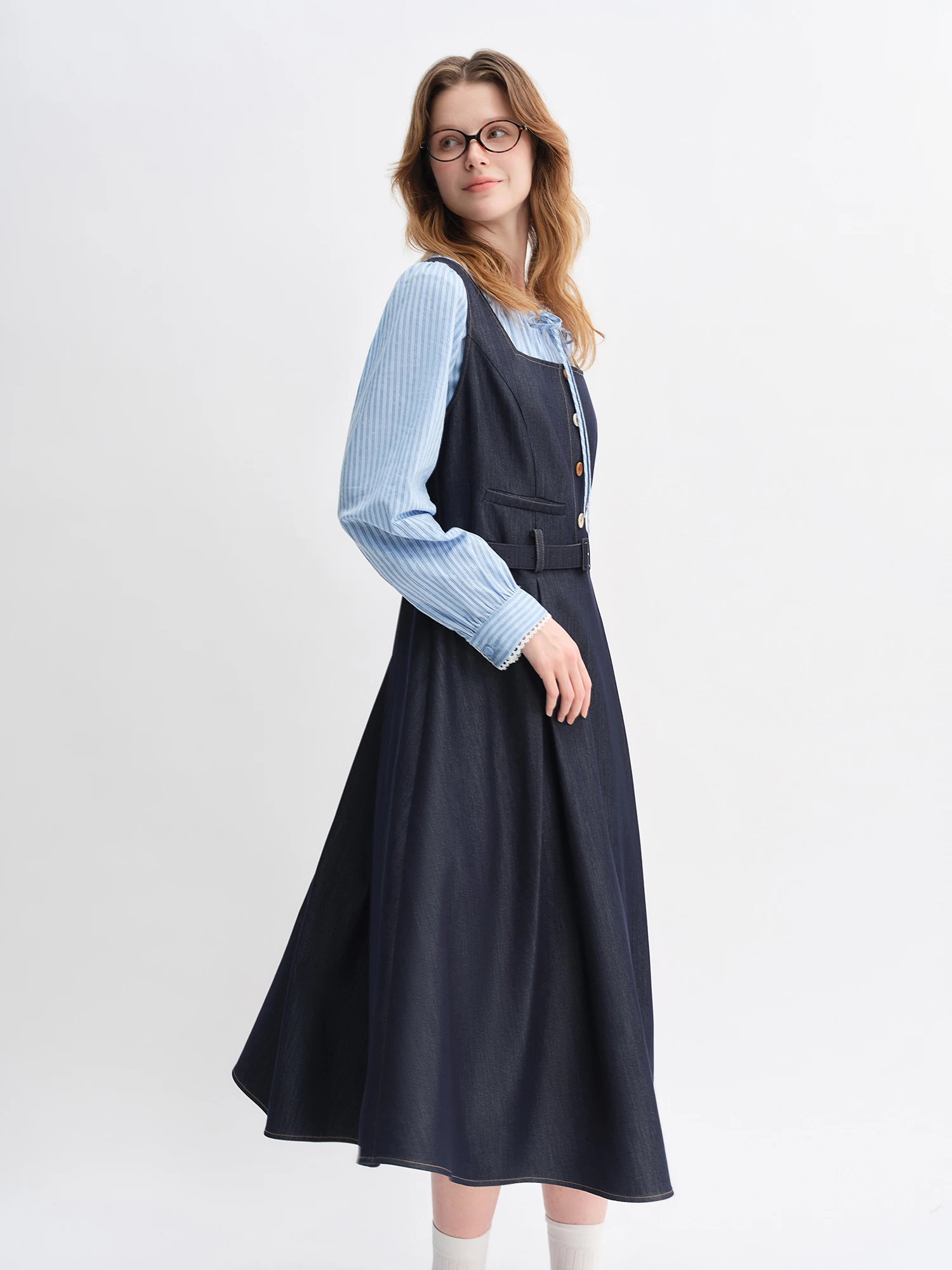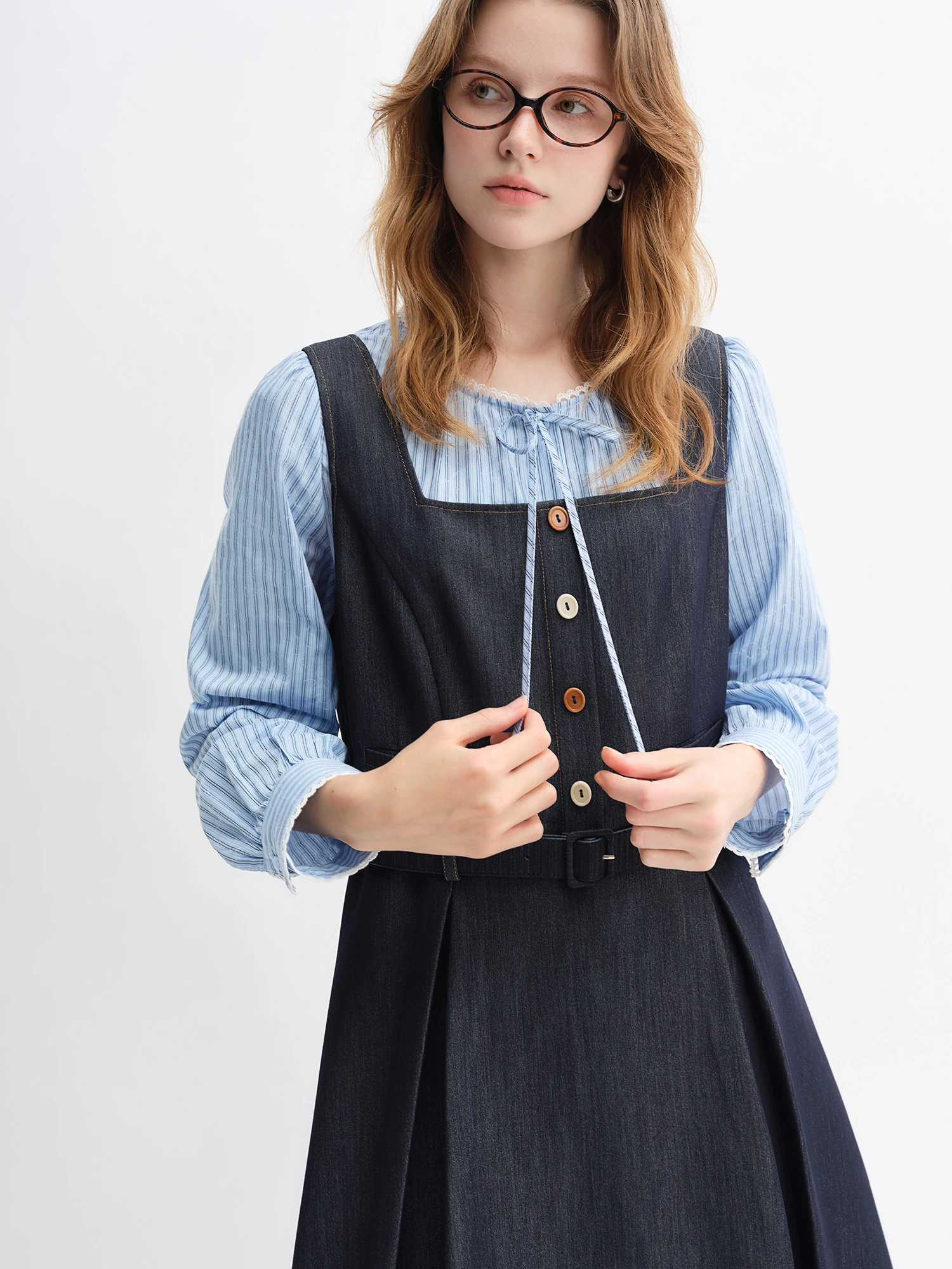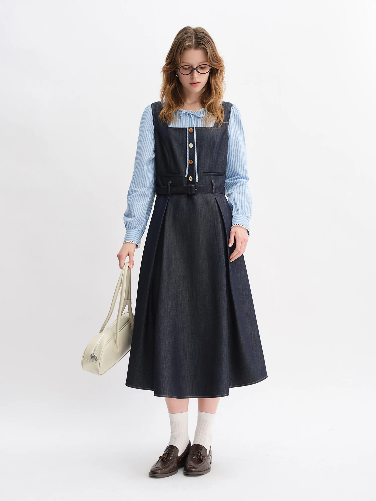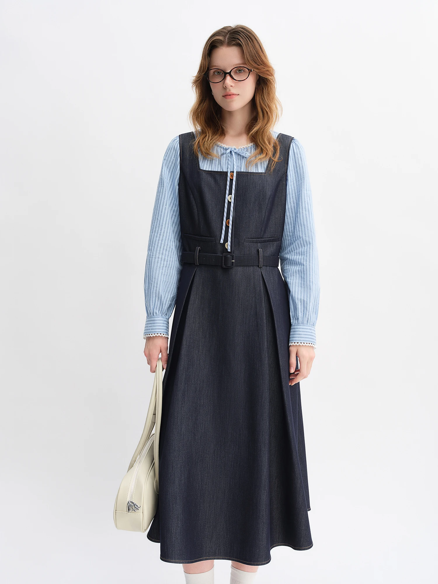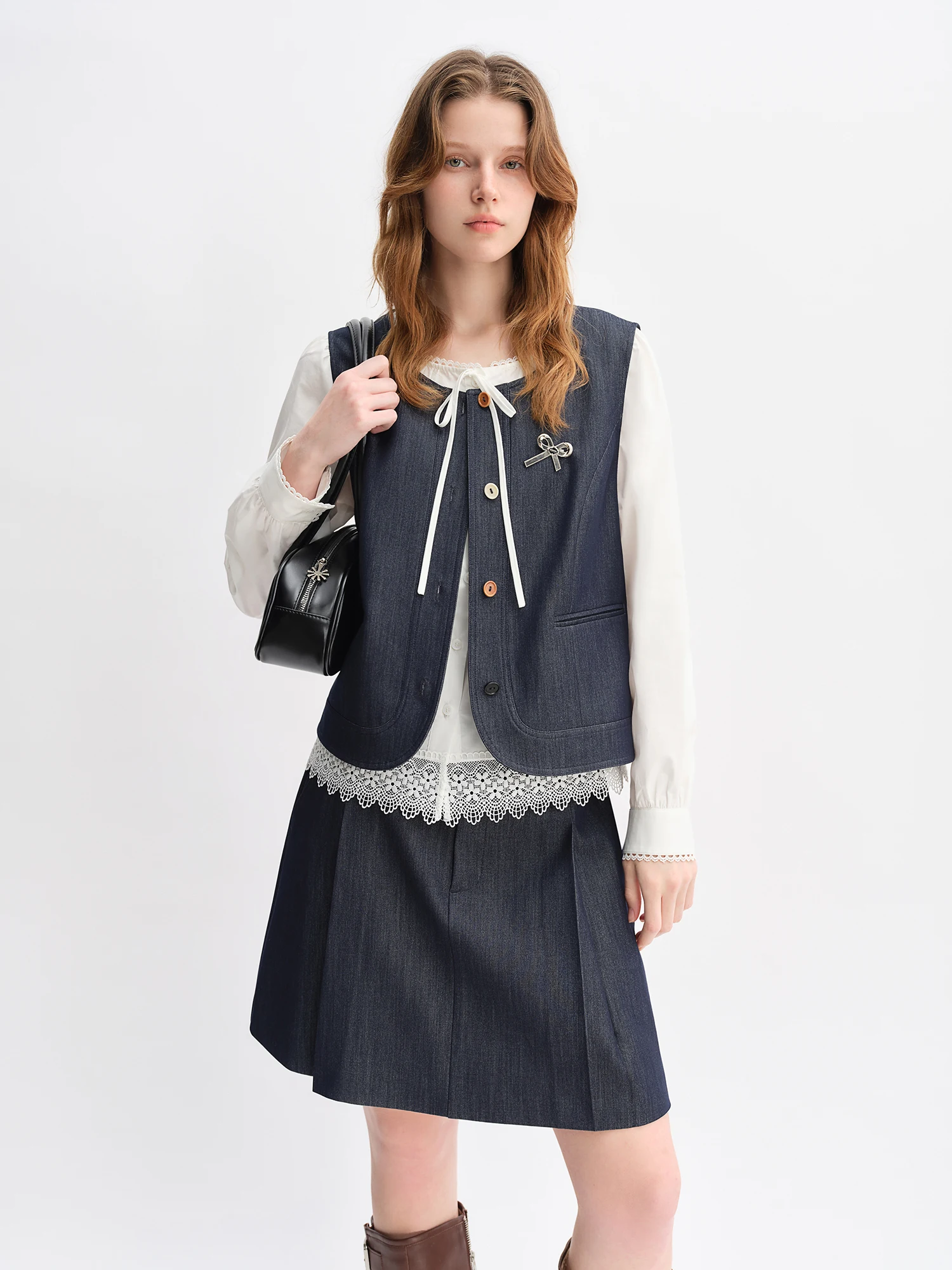 DUSHU Nordic Style Fashion Denim Suit Women Autumn 2025 New Long and Short Vest Skirt Vintage Clothing Ins Dresses 25DS83108