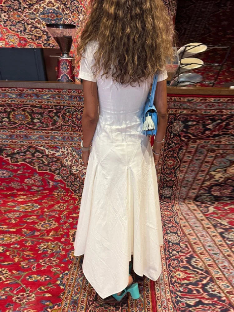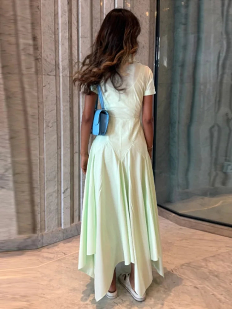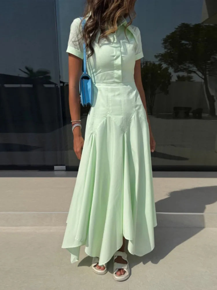 Fashion Women's Shirt Style Dress Turn-Down Collar Short Sleeve Solid Lady Dresses Irregular 2025 Summer Elegant Female Robe