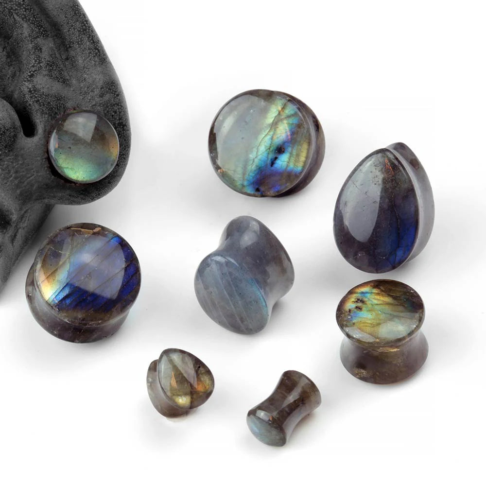 Organic Labradorite Stone Ear Plugs Tunnels Flesh Double Flare Earlet Gauges Expander Round Teardrop Piercing Oreja Body Jewelry