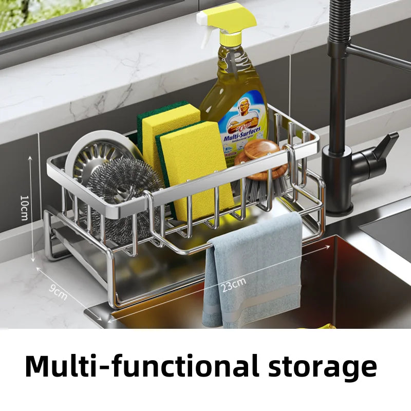 Sink Cleaning Tools Storage Holder Kitchen Stainless Steel Drain Rack for Sponge Cleanser Organizer Rag Hanger