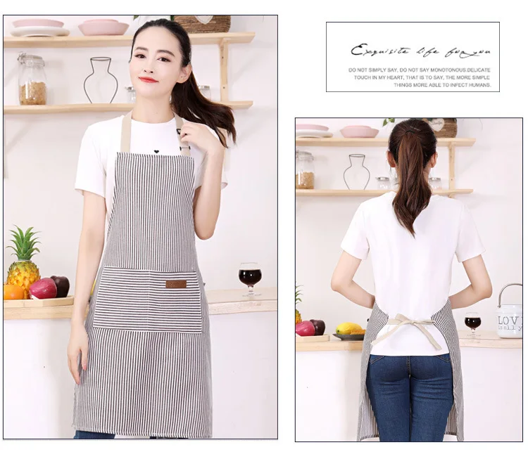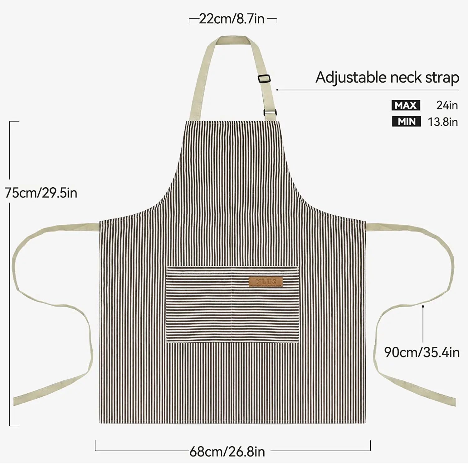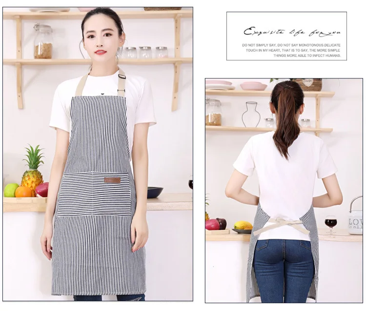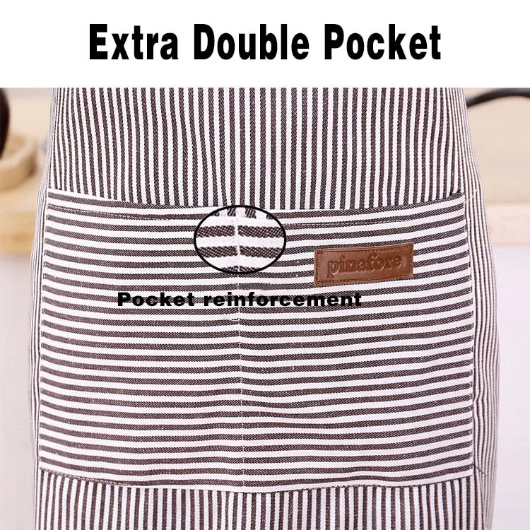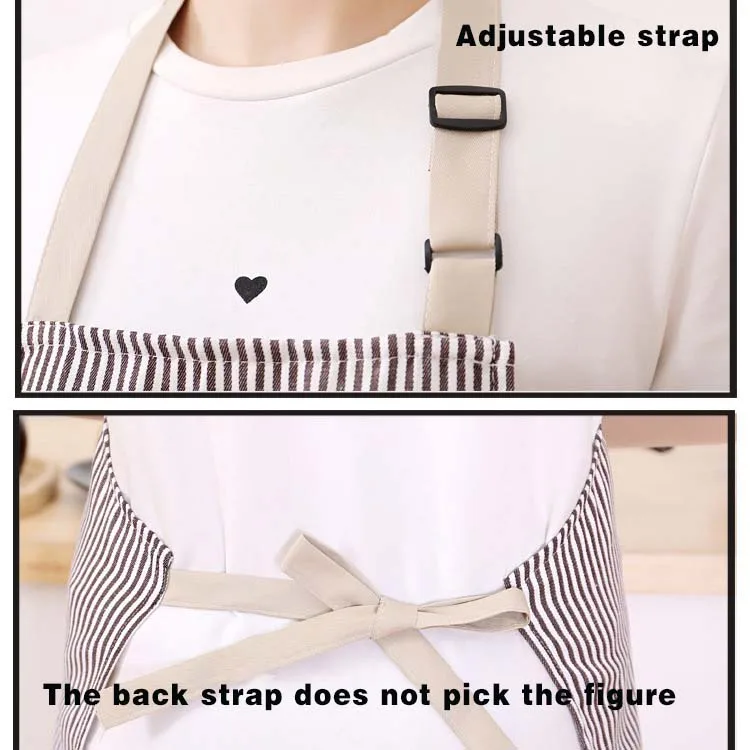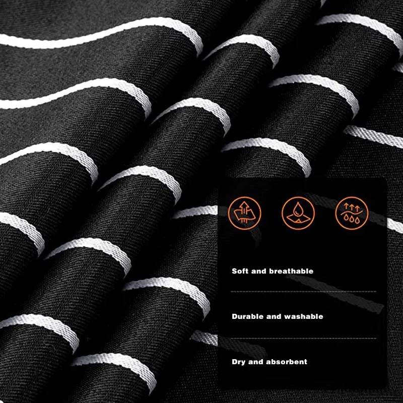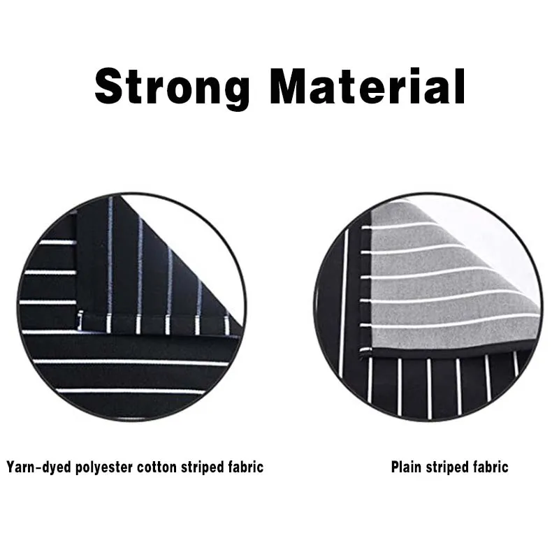 White Black Striped Man Woman Home Restaurant Kitchen Baking Nail Bib Oil Repellent Work Apron 2 Pockets Adjustable Clean Apron