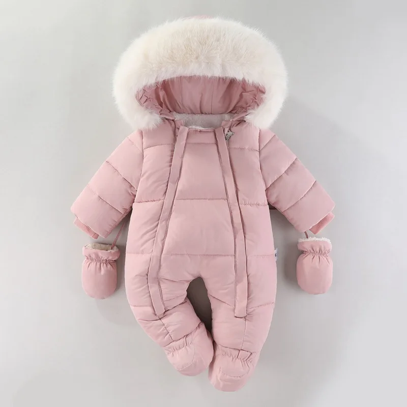 YBFSKID Baby Girls Winter Jumpsuits Plus Velvet Warm Newborn Babys Overalls Infant Girls Snowsuit Toddler Romper Outerwear Coats